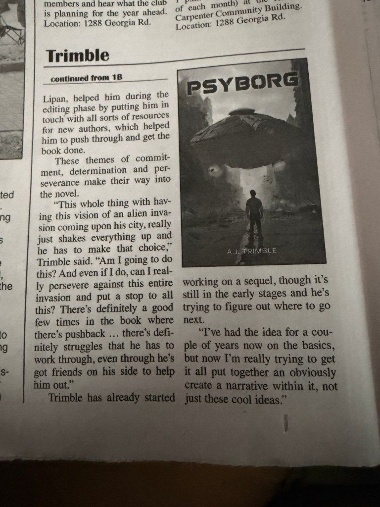 Another cool update is that I was also given the opportunity to be in a newspaper article discussing Psyborg! Here’s that: