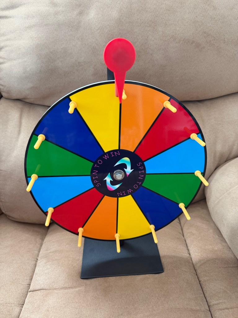 As for information on what’ll be at my booth, my offerings will be mostly the same as they were at the book signing late last year. I’ll be selling paperback and hardback copies of Psyborg, as well as the gift boxes that I was selling at the book signing. Alongside these though, I plan to bring something new, that being a spinner wheel. For a dollar, you’ll be able to spin the wheel and win a random prize! I haven’t decided on what the prizes will be yet, but here’s the spinner that I’ll be using at this event, which I just got recently: